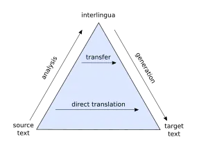 Transfer-based machine translation is a type of machine translation (MT). It is currently one of the most widely used methods of machine translation. In contrast to the simpler direct model of MT, transfer MT breaks translation into three steps: analysis of the source language text to determine its grammatical structure, transfer of the resulting structure to a structure suitable for generating text in the target language, and finally generation of this text. Transfer-based MT systems are thus capable of using knowledge of the source and target languages.[1]