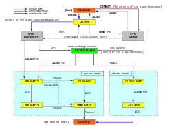 | CLOSING | Server and client | Waiting for a connection termination request acknowledgment from the remote TCP. |