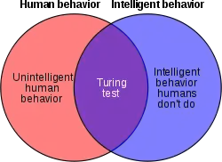 The Turing test, originally called the imitation game by Alan Turing in 1950,[2] is a test of a machine's ability to exhibit intelligent behaviour equivalent to, or indistinguishable from, that of a human. Turing proposed that a human evaluator would judge natural language conversations between a human and a machine designed to generate human-like responses. The evaluator would be aware that one of the two partners in conversation was a machine, and all participants would be separated from one another. The conversation would be limited to a text-only channel, such as a computer keyboard and screen, so the result would not depend on the machine's ability to render words as speech.[3] If the evaluator could not reliably tell the machine from the human, the machine would be said to have passed the test. The test results would not depend on the machine's ability to give correct answers to questions, only on how closely its answers resembled those a human would give. Since the Turing test is a test of indistinguishability in performance capacity, the verbal version generalizes naturally to all of human performance capacity, verbal as well as nonverbal (robotic).[4]
