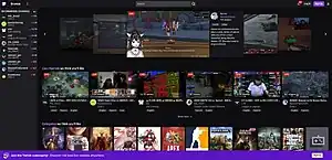Twitch is an American video live-streaming service that focuses on video game live streaming, including broadcasts of esports competitions, in addition to offering music broadcasts, creative content, and "in real life" streams. Twitch is operated by Twitch Interactive, a subsidiary of Amazon.[4] It was introduced in June 2011 as a spin-off of the general-interest streaming platform Justin.tv.[5] Content on the site can be viewed either live or via video on demand. The games shown on Twitch's current homepage are listed according to audience preference and include genres such as real-time strategy games (RTS), fighting games, racing games, and first-person shooters.[6]