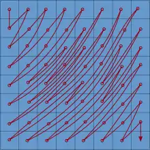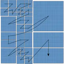 In order to enable some parallel processing of frames, video frames can be split along coding unit boundaries into up to four rows of 256 to 4096 pixels wide evenly spaced tiles with each tile column coded independently. This is mandatory for video resolutions in excess of 4096 pixels. A tile header contains the tile size in bytes so decoders can skip ahead and decode each tile row in a separate thread. The image is then divided into coding units called superblocks of 64×64 pixels which are adaptively subpartitioned in a quadtree coding structure.[8][9] They can be subdivided either horizontally or vertically or both; square (sub)units can be subdivided recursively down to 4×4 pixel blocks. Subunits are coded in raster scan order: left to right, top to bottom.