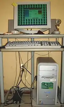 Originally an acronym of Video Audio Input Output, later amended to Video Audio Integrated Operation,[6] and later to Visual Audio Intelligent Organizer in 2008 to celebrate the brand's 10th anniversary.[7] The logo, along with the first of the VAIO computers, were designed by Teiyu Goto,[8][9] supervisor of product design from the Sony Creative Center in Tokyo. He incorporated many meanings into the logo and acronym: the pronunciation in both English (VAIO) and Japanese (バイオ) is similar to "bio", which is symbolic of life and the product's future evolution. It's also near "violet", which is why most early Vaios were purple or included purple components. Additionally, the logo is stylized to make the "VA" look like a sine wave and the "IO" like binary digits 1 and 0, the combination representing the merging of analog and digital signals.[10] The sound some Vaio models make during startup is derived from the melody created when pressing a telephone keypad to spell the letters V-A-I-O.[11][12]