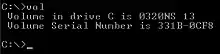 The vol command can be used from the command line to display the current label and serial number of a volume.