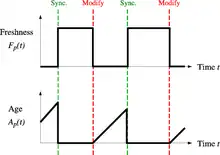 Age: This is a measure that indicates how outdated the local copy is. The age of a page p in the repository, at time t is defined as: