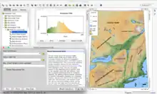 - Hydrology tools: DEM preprocessing tools, flow direction and accumulation (D8, Rho8, Dinf, and FD8 algorithms), mass flux analysis, watershed extraction