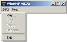 Winamp was first released in 1997, when Justin Frankel and Dmitry Boldyrev,[7][8][9] formerly students at the University of Utah, integrated their Windows user interface with the Advanced Multimedia Products ("AMP") MP3 file playback engine.[56] The name Winamp (originally spelled WinAMP) was a portmanteau of "Windows" and "AMP".[57] The minimalist WinAMP 0.20a was released as freeware on April 21, 1997.[58][59] Its windowless, menu bar-only interface showed only play (open), stop, pause, and unpause functions. A file specified on the command line or dropped onto its icon would be played. MP3 decoding was performed by the AMP decoding engine developed by Advanced Multimedia Products co-founder Tomislav Uzelac, which was free for non-commercial use.[60] It was compatible with Windows 95 and Windows NT 4.0. Winamp was the second real-time MP3 player for Windows, the first being WinPlay3.[61]