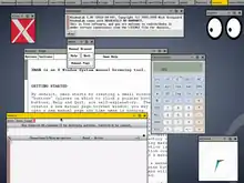 WindowLab is an X window manager for Unix-like systems. It is based on aewm and retains that window manager's lightweight aesthetic.[2] In many aspects, WindowLab has looked to the Amiga's user interface for inspiration without cloning it completely. Its top-level menu bar is accessed by a right click as on the Amiga and it follows Fitts's law of usability in that once the mouse enters the menu area it is constrained there in both the horizontal and vertical directions. Unlike on the Amiga, the menu bar is not controlled by applications; it is a global launcher menu which is populated by a dot file in the user's home directory containing a list of menu titles and commands.