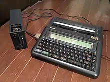 The Japanese writing system uses a large number of kanji (logographic Chinese characters) which require 2 bytes to store, so having one key per each symbol is infeasible. Japanese word processing became possible with the development of the Japanese input method (a sequence of keypresses, with visual feedback, which selects a character) -- now widely used in personal computers. Oki launched OKI WORD EDITOR-200 in March 1979 with this kana-based keyboard input system. In 1980 several electronics and office equipment brands including entered this rapidly growing market with more compact and affordable devices. For instance, NEC introduced the NWP-20, and Fujitsu launched the Fujitsu OASYS. While the average unit price in 1980 was 2,000,000 JPY (US$14,300), it was dropped to 164,000 JPY (US$1,200) in 1985.[21] Even after personal computers became widely available, Japanese word processors remained popular as they tended to be more portable (an "office computer" was initially too large to carry around), and become commonplace for business and academics, even for private individuals in the second half of the 1980s.[22] The phrase "word processor" has been abbreviated as "Wa-pro" or "wapuro" in Japanese.