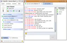 XMPP supports conferences with multiple users, using the specification Multi-User Chat (MUC) (XEP-0045). From the point of view of a normal user, it is comparable to Internet Relay Chat (IRC).
