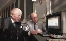 Clive Sinclair became a focal point during the ZX Spectrum's marketing campaign by putting a human face onto the business. Sinclair Research was portrayed in the media as a "plucky" British challenger taking on the technical and marketing might of giant American and Japanese corporations. As David O'Reilly noted in 1986, "by astute use of public relations, particularly playing up his image of a Briton taking on the world, Sinclair has become the best-known name in micros."[62] The media latched onto Sinclair's image; his "Uncle Clive" persona is said to have been created by the gossip columnist for Personal Computer World.[63] The press praised Sinclair as a visionary genius, with The Sun lauding him as "the most prodigious inventor since Leonardo da Vinci". Adamson and Kennedy wrote that Sinclair outgrew the role of microcomputer manufacturer and "accepted the mantle of pioneering boffin leading Britain into a technological utopia".[64] Sinclair's contribution to the technology sector resulted in him being knighted upon the recommendation of Margaret Thatcher in the Queen's 1983 Birthday Honours List.[65][66][67]