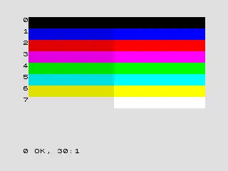 | Display | PAL RF modulator out, 256 × 192, 15 colours |