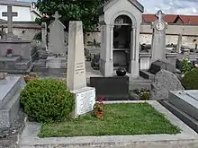 On 2 June, Évariste Galois was buried in a common grave of the Montparnasse Cemetery whose exact location is unknown.[18][16] In the cemetery of his native town – Bourg-la-Reine – a cenotaph in his honour was erected beside the graves of his relatives.[25]