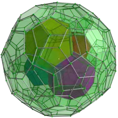 In geometry, the 120-cell is the convex regular 4-polytope (four-dimensional analogue of a Platonic solid) with Schläfli symbol {5,3,3}. It is also called a C120, dodecaplex (short for "dodecahedral complex"), hyperdodecahedron, polydodecahedron, hecatonicosachoron, dodecacontachoron[1] and hecatonicosahedroid.[2]