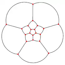 The 120-cell's edges do not form regular great circle polygons in a single central plane the way the edges of the 600-cell, 24-cell, and 16-cell do. Like the edges of the 5-cell and the 8-cell tesseract, they form zig-zag Petrie polygons instead.[lower-alpha 27] The 120-cell's Petrie polygon is a triacontagon {30} zig-zag skew polygon.[lower-alpha 29]