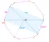 57. This illustration shows just one of three related irregular great dodecagons that lie in three distinct △ central planes. Two of them (not shown) lie in Clifford parallel (disjoint) dodecagon planes, and share no vertices. The blue central rectangle of #4 and #11 edges lies in a third dodecagon plane, not Clifford parallel to either of the two disjoint dodecagon planes and intersecting them both; it shares two vertices (a 4 axis of the rectangle) with each of them. Each dodecagon plane contains two irregular great hexagons in alternate positions (not shown).[lower-alpha 17] Thus each #4 chord of the great rectangle shown is a bridge between two Clifford parallel irregular great hexagons that lie in the two dodecagon planes which are not shown.[lower-alpha 57]