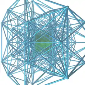 ![]() Perspective projection: the first layer of adjacent 16-cell facets. | |