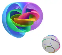 To get the interlocking circles of the Hopf fibration, make a simple substitution in the equations above[2]