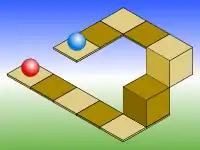 In this isometric drawing, the blue sphere is two units higher than the red one. However, this difference in elevation is not apparent if one covers the right half of the picture, as the boxes (which serve as clues suggesting height) are then obscured.