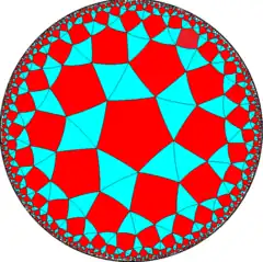 In geometry, the 4-5 kisrhombille or order-4 bisected pentagonal tiling is a semiregular dual tiling of the hyperbolic plane. It is constructed by congruent right triangles with 4, 8, and 10 triangles meeting at each vertex.