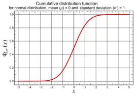 Diagram showing the cumulative distribution function for the normal distribution with mean (μ) 0 and variance (σ2) 1