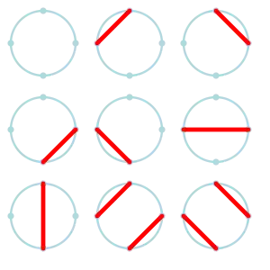 9 is a Motzkin number, for the number of ways of drawing non-intersecting chords between four points on a circle.[12]