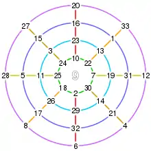 The first non-trivial magic square is a x magic square made of nine cells, with a magic constant of 15.[13] Meanwhile, a x magic square has a magic constant of 369.[14]