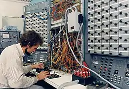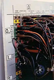 Educational analog computers illustrated the principles of analog calculation. The Heathkit EC-1, a $199 educational analog computer, was made by the Heath Company, US c. 1960.[22] It was programmed using patch cords that connected nine operational amplifiers and other components.[23] General Electric also marketed an "educational" analog computer kit of a simple design in the early 1960s consisting of two transistor tone generators and three potentiometers wired such that the frequency of the oscillator was nulled when the potentiometer dials were positioned by hand to satisfy an equation. The relative resistance of the potentiometer was then equivalent to the formula of the equation being solved. Multiplication or division could be performed, depending on which dials were inputs and which was the output. Accuracy and resolution was limited and a simple slide rule was more accurate. However, the unit did demonstrate the basic principle.
