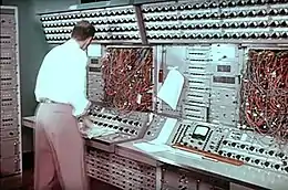 The FERMIAC was an analog computer invented by physicist Enrico Fermi in 1947 to aid in his studies of neutron transport.[16] Project Cyclone was an analog computer developed by Reeves in 1950 for the analysis and design of dynamic systems.[17] Project Typhoon was an analog computer developed by RCA in 1952. It consisted of over 4,000 electron tubes and used 100 dials and 6,000 plug-in connectors to program.[18] The MONIAC Computer was a hydraulic analogy of a national economy first unveiled in 1949.[19]