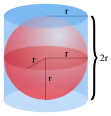 In this two-volume treatise addressed to Dositheus, Archimedes obtains the result of which he was most proud, namely the relationship between a sphere and a circumscribed cylinder of the same height and diameter. The volume is 4/3πr3 for the sphere, and 2πr3 for the cylinder. The surface area is 4πr2 for the sphere, and 6πr2 for the cylinder (including its two bases), where r is the radius of the sphere and cylinder.