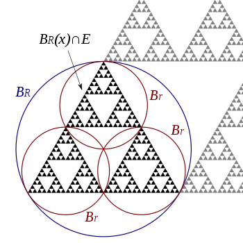 The intuition underlying this definition is that, for a set E with "ordinary" integer dimension n, the number of small balls of radius r needed to cover the intersection of a larger ball of radius R with E will scale like (R/r)n.