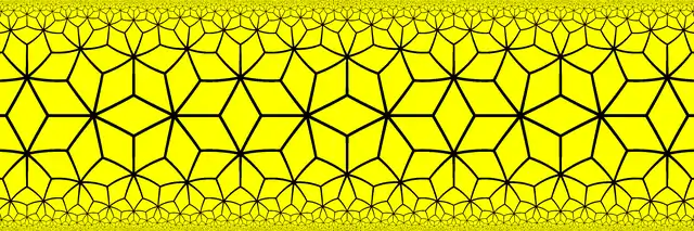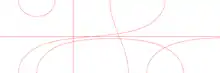 Geodesics include the line along the middle of the band, and any open line segment perpendicular to boundaries of the band connecting the sides of the band. Every end of a geodesic either meets a boundary of the band at a right angle or is asymptotic to the midline; the midline itself is the only geodesic that does not meet a boundary.[2] Lines parallel to the boundaries of the band within the band are hypercycles whose centers are the line through the middle of the band.