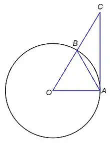 is shown pictorially for any . The three terms are the areas of the triangle OAC, circle section OAB, and the triangle OAB. Taking reciprocals and squaring gives