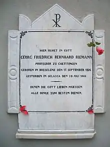 Riemann's tombstone in Biganzolo (Italy) refers to Romans 8:28:[12]