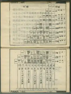 A page from Seki Takakazu's Katsuyō Sanpō (1712), tabulating binomial coefficients and Bernoulli numbers
