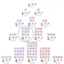 Closely related to a Bernoulli trial is a binomial experiment, which consists of a fixed number of statistically independent Bernoulli trials, each with a probability of success , and counts the number of successes. A random variable corresponding to a binomial experiment is denoted by , and is said to have a binomial distribution. The probability of exactly successes in the experiment is given by: