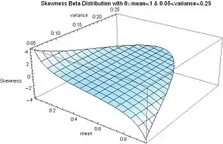 This parametrization of the beta distribution may lead to a more intuitive understanding than the one based on the original parameters α and β. For example, by expressing the mode, skewness, excess kurtosis and differential entropy in terms of the mean and the variance: