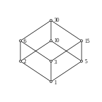 - For any natural number n, the set of all positive divisors of n, defining a ≤ b if a divides b, forms a distributive lattice. This lattice is a Boolean algebra if and only if n is square-free. The bottom and the top elements of this Boolean algebra are the natural numbers 1 and n, respectively. The complement of a is given by n/a. The meet and the join of a and b are given by the greatest common divisor (gcd) and the least common multiple (lcm) of a and b, respectively. The ring addition a + b is given by lcm(a, b) / gcd(a, b). The picture shows an example for n = 30. As a counter-example, considering the non-square-free n = 60, the greatest common divisor of 30 and its complement 2 would be 2, while it should be the bottom element 1.