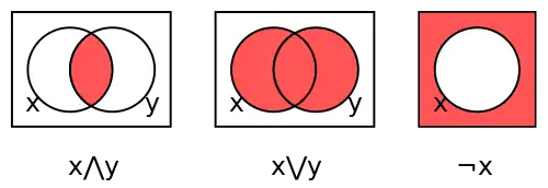 - In logic, a common notation is to use x ∧ y for the meet (same as the ring product) and use x ∨ y for the join, given in terms of ring notation (given just above) by x + y + xy.
