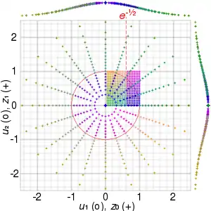 The polar method differs from the basic method in that it is a type of rejection sampling. It discards some generated random numbers, but can be faster than the basic method because it is simpler to compute (provided that the random number generator is relatively fast) and is more numerically robust.[9] Avoiding the use of expensive trigonometric functions improves speed over the basic form.[6] It discards 1 − π/4 ≈ 21.46% of the total input uniformly distributed random number pairs generated, i.e. discards 4/π − 1 ≈ 27.32% uniformly distributed random number pairs per Gaussian random number pair generated, requiring 4/π ≈ 1.2732 input random numbers per output random number.