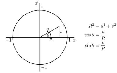 We now identify the value of s with that of U1 and with that of U2 in the basic form. As shown in the figure, the values of and in the basic form can be replaced with the ratios and , respectively. The advantage is that calculating the trigonometric functions directly can be avoided. This is helpful when trigonometric functions are more expensive to compute than the single division that replaces each one.
