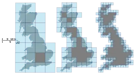 To calculate this dimension for a fractal , imagine this fractal lying on an evenly spaced grid and count how many boxes are required to cover the set. The box-counting dimension is calculated by seeing how this number changes as we make the grid finer by applying a box-counting algorithm.