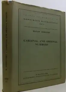 Cardinal and Ordinal Numbers is a book on transfinite numbers, by Polish mathematician Wacław Sierpiński. It was published in 1958 by Państwowe Wydawnictwo Naukowe, as volume 34 of the series Monografie Matematyczne of the Institute of Mathematics of the Polish Academy of Sciences.[1][2] Sierpiński wrote on the same topic earlier, in his 1928 book Leçons sur les nombres transfinis, but his 1958 book on the topic was completely rewritten and significantly longer.[1] A second edition of Cardinal and Ordinal Numbers was published in 1965.[2][3]
