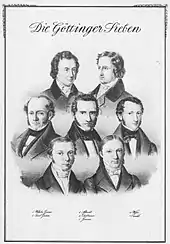Gauss was loyal to the House of Hanover. After King William IV died in 1837, the personal union between the kingdoms of Great Britain and Ireland and Hanover ceased. In the same year, the new Hanoverian King Ernest Augustus annulled the constitution given to the state by his brother in 1833. Seven prominent professors, later known as the "Göttingen Seven", protested against this, among them his friend and collaborator Wilhelm Weber and Gauss' son-in-law Heinrich Ewald. All of them were dismissed, and three of them were expelled, but Ewald and Weber could stay in Göttingen. Ewald took a position at the University of Tübingen in 1838, where Gauss' daughter Wilhelmina died soon after in 1840, and Weber went to the University of Leipzig in 1843; both of them returned to their Göttingen positions in 1849 as the only ones of the Göttingen Seven. Gauss was deeply affected by this quarrel but saw no possibility to help them.[100]