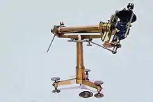 Gauss took on the directorate of the 60-year-old observatory, founded in 1748 by Prince-elector George II and built on a converted fortification tower,[25] with usable, but partly out-of-date instruments.[26] The construction of a new observatory had been approved by Prince-elector George III in principle since 1802, and the Westphalian government continued the planning,[27] but Gauss could not move to his new place of work until September 1816.[19] He got new up-to-date instruments, for instance, two meridian circles from Repsold[28] and Reichenbach,[29] and a heliometer from Fraunhofer.[30]