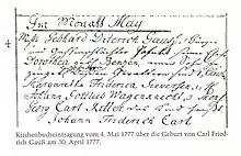 | Born | Johann Carl Friedrich Gauss 30 April 1777 Brunswick, Principality of Brunswick-Wolfenbüttel, Holy Roman Empire |