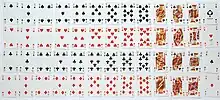 An illustrative example is the standard 52-card deck. The standard playing card ranks {A, K, Q, J, 10, 9, 8, 7, 6, 5, 4, 3, 2} form a 13-element set. The card suits {♠, ♥, ♦, ♣} form a four-element set. The Cartesian product of these sets returns a 52-element set consisting of 52 ordered pairs, which correspond to all 52 possible playing cards.