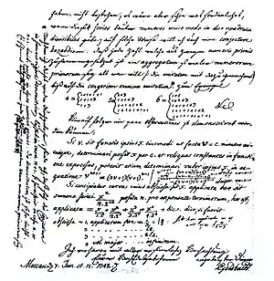 Goldbach is most noted for his correspondence with Leibniz, Euler, and Bernoulli, especially in his 1742 letter to Euler stating his Goldbach's conjecture. He also studied and proved some theorems on perfect powers, such as the Goldbach–Euler theorem, and made several notable contributions to analysis.[1] He also proved a result concerning Fermat numbers that is called Goldbach's theorem.