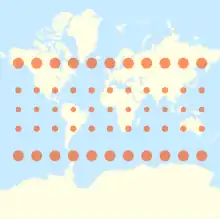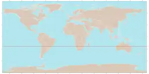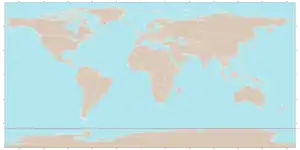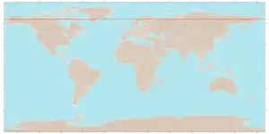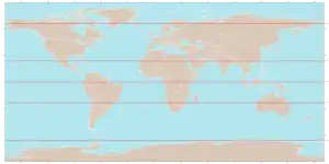 The five major circles of latitude shown on an equirectangular projection of Earth.