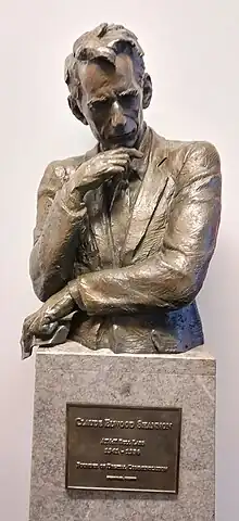 There are six statues of Shannon sculpted by Eugene Daub: one at the University of Michigan; one at MIT in the Laboratory for Information and Decision Systems; one in Gaylord, Michigan; one at the University of California, San Diego; one at Bell Labs; and another at AT&T Shannon Labs.[54] The statue in Gaylord is located in the Claude Shannon Memorial Park.[55] After the breakup of the Bell System, the part of Bell Labs that remained with AT&T Corporation was named Shannon Labs in his honor.