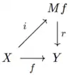 A map of topological spaces is called a cofibration[1]pg 51 if for any map such that there is an extension to , meaning there is a map such that , we can extend a homotopy of maps to a homotopy of maps , where